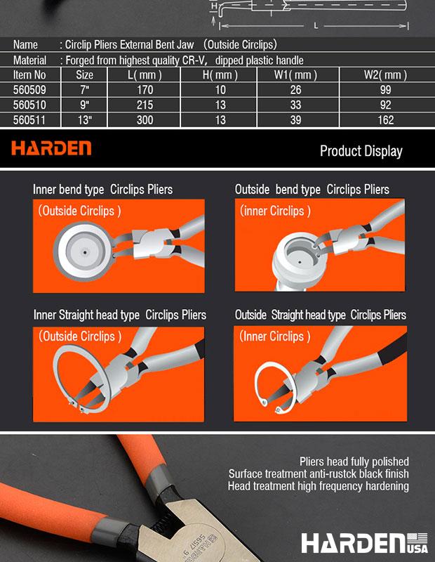 Alicate de Anel Externo Curvo HARDEN – Aço Carbono Temperado e Acabamento Anticorrosão