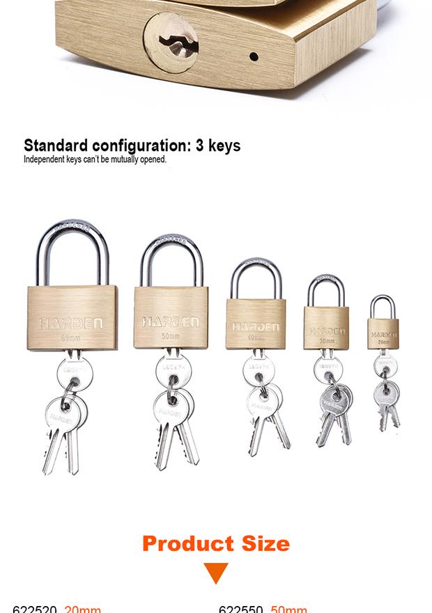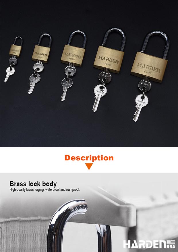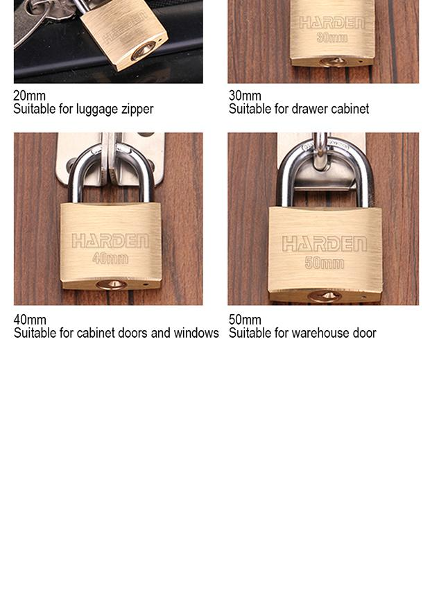 Cadeado de Latão HARDEN com Arco em Aço Temperado e Trava Dupla
