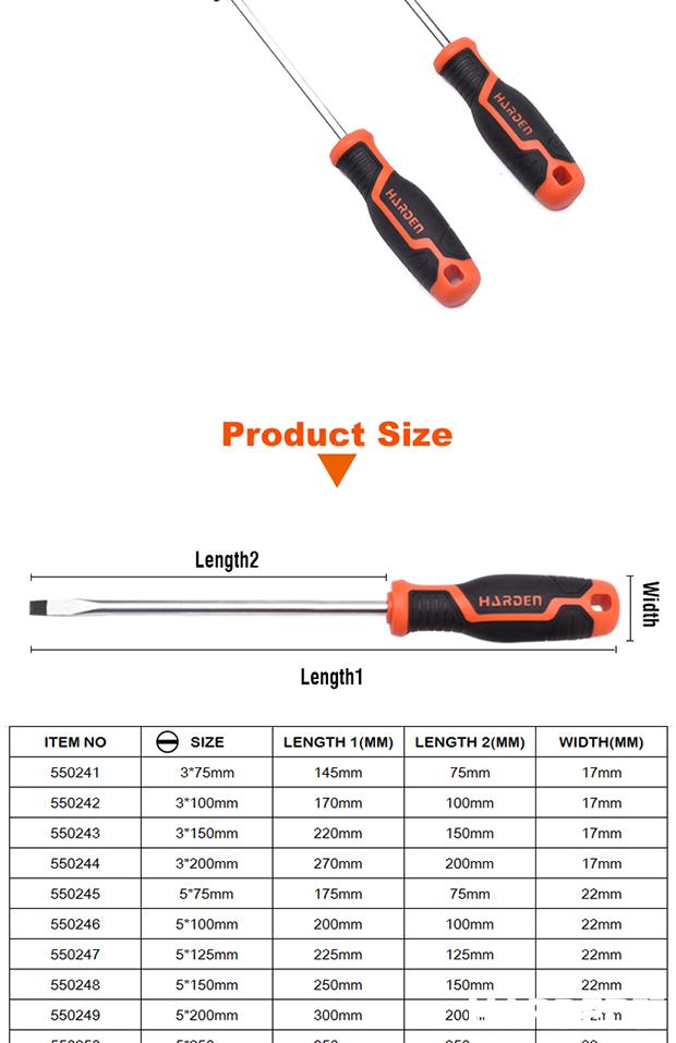 Chave de Fenda HARDEN com Cabo TPR – Aço CR-V 6150 Temperado (modelos variados)
