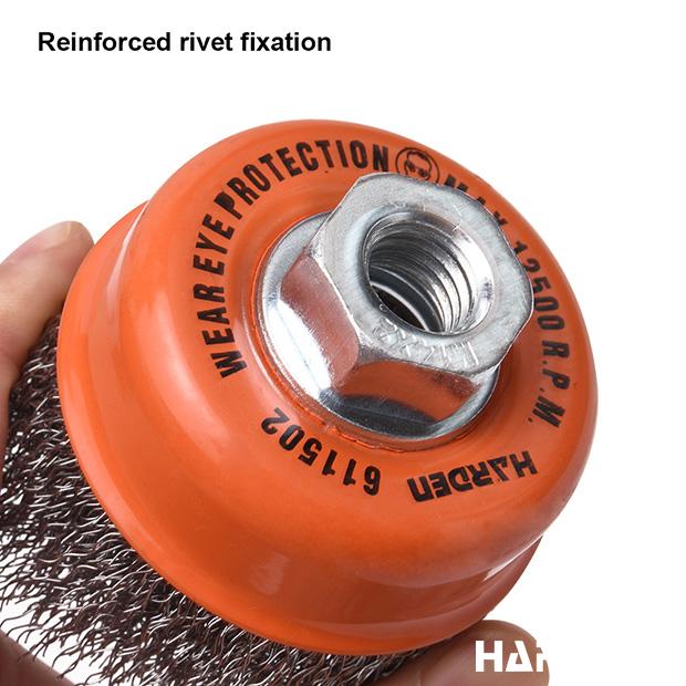 Escova Tipo Copo com Rosca HARDEN – Fios de Aço 75mm, 100mm e 125mm (M10 e M14)