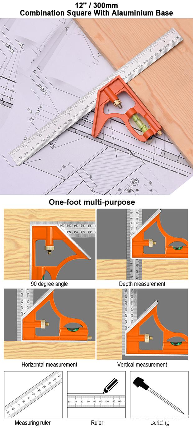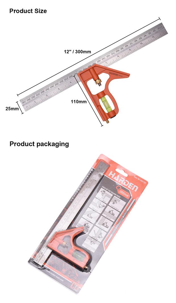 Esquadro Combinado 300 mm (12") em Aço Inoxidável com Base de Alumínio HARDEN
