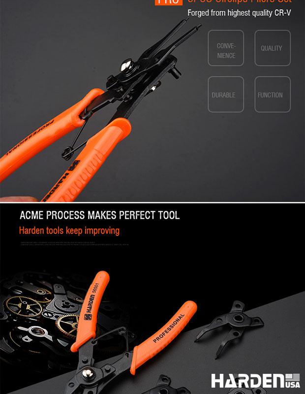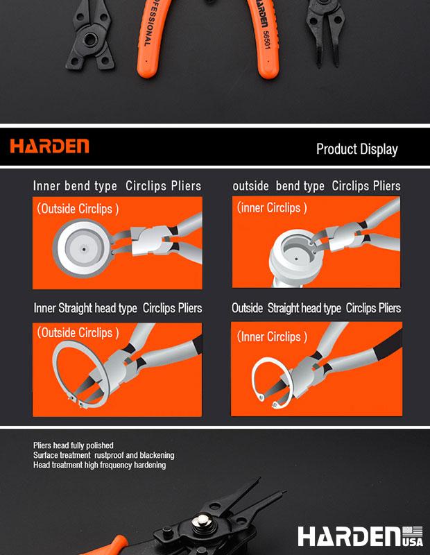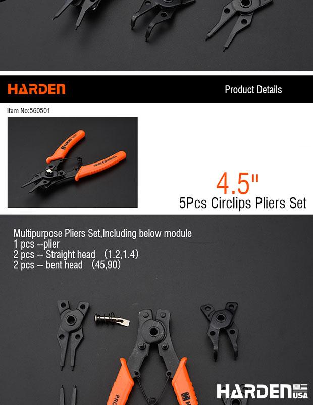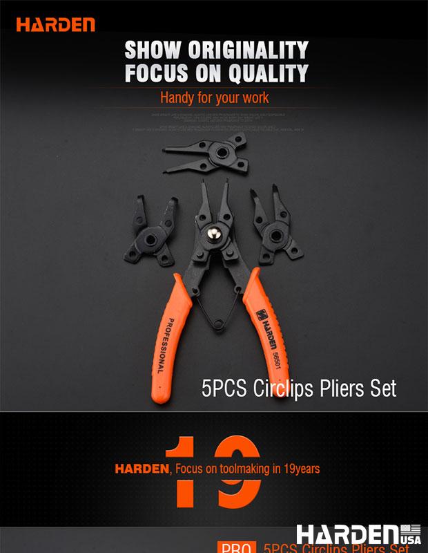 HARDEN Jogo de Alicates para Anéis Trava – Kit 5 Peças com Pontas Retas e Curvas
