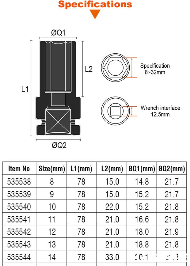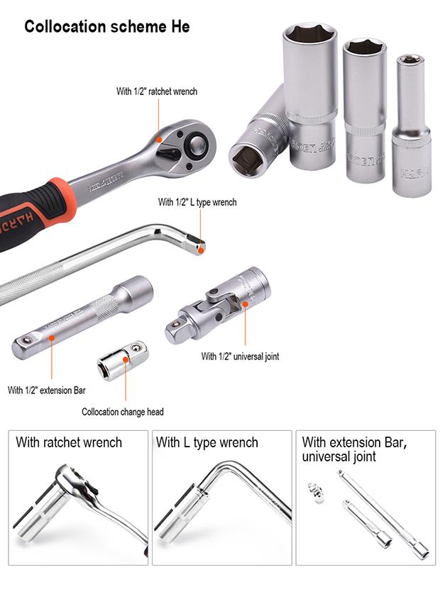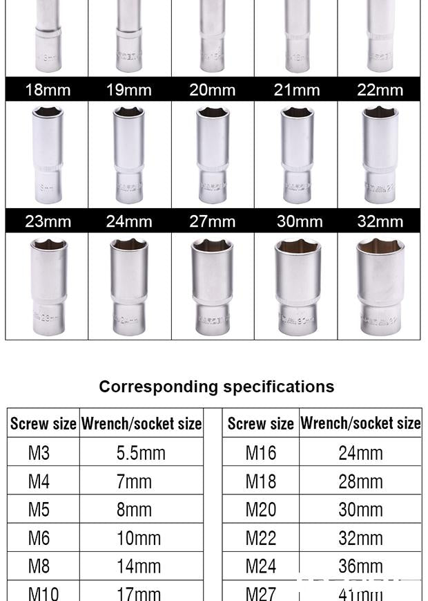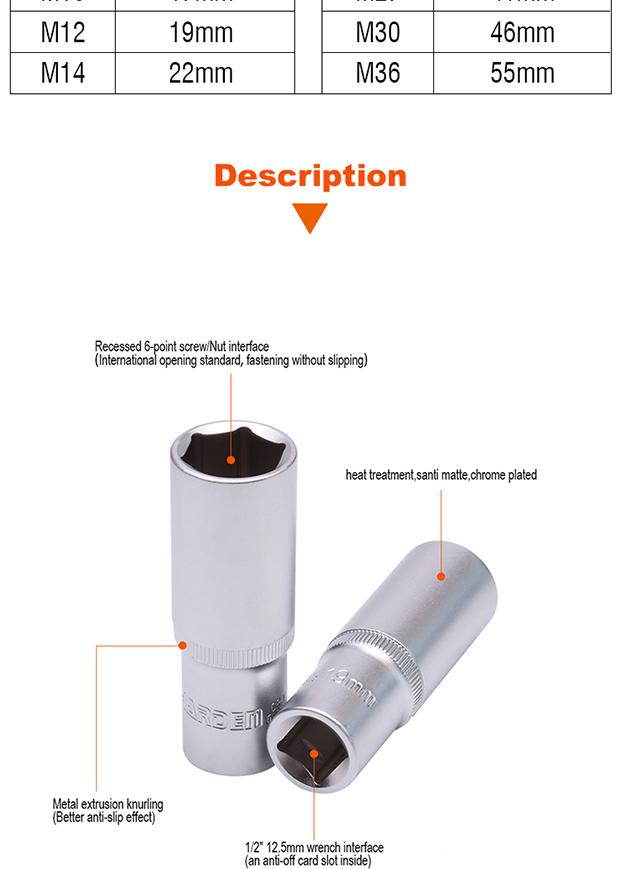 HARDEN – Soquete Longo Sextavado 1/2" em Aço CR-V (Várias Medidas)
