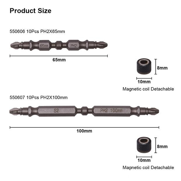 Jogo de Bits Phillips HARDEN PH2 x 65 mm em Aço S2 com 10 Peças e Ímãs Magnéticos