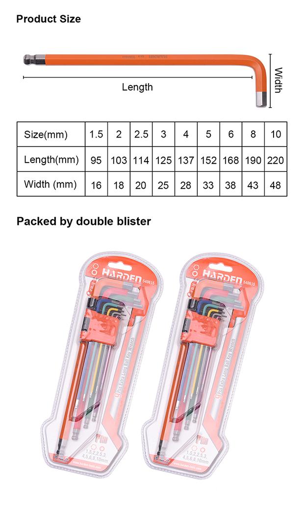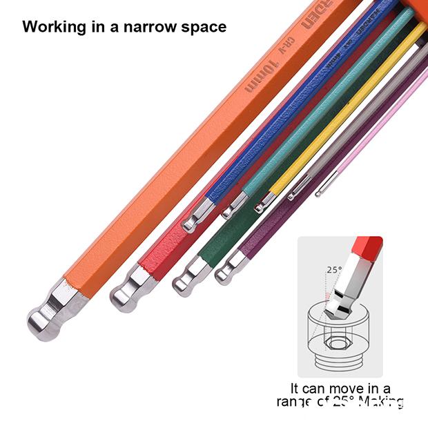 Jogo de Chaves Allen Extra Longas HARDEN 9 Peças – Aço CR-V Temperado e Acabamento Colorido