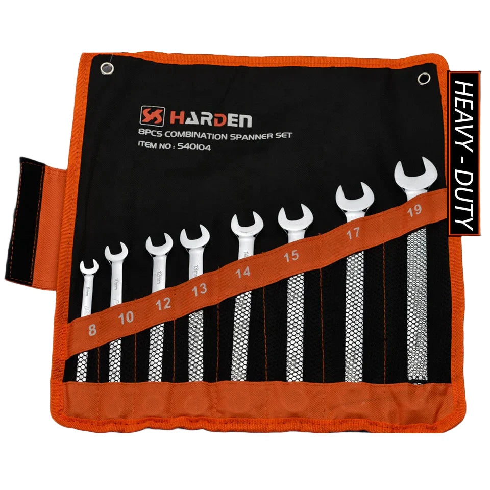 O Jogo de Chaves Combinadas HARDEN com 8 peças é ideal para profissionais da mecânica, manutenção industrial, automotiva e também para hobistas que buscam ferramentas resistentes e de alta precisão. Fabricadas em aço cromo-vanádio (Cr-V), conhecido pela sua durabilidade e resistência à corrosão, as chaves possuem acabamento fosco que evita reflexos e melhora a pegada. O conjunto oferece tamanhos variados, atendendo diferentes tipos de fixadores e proporcionando maior versatilidade e eficiência no trabalho.