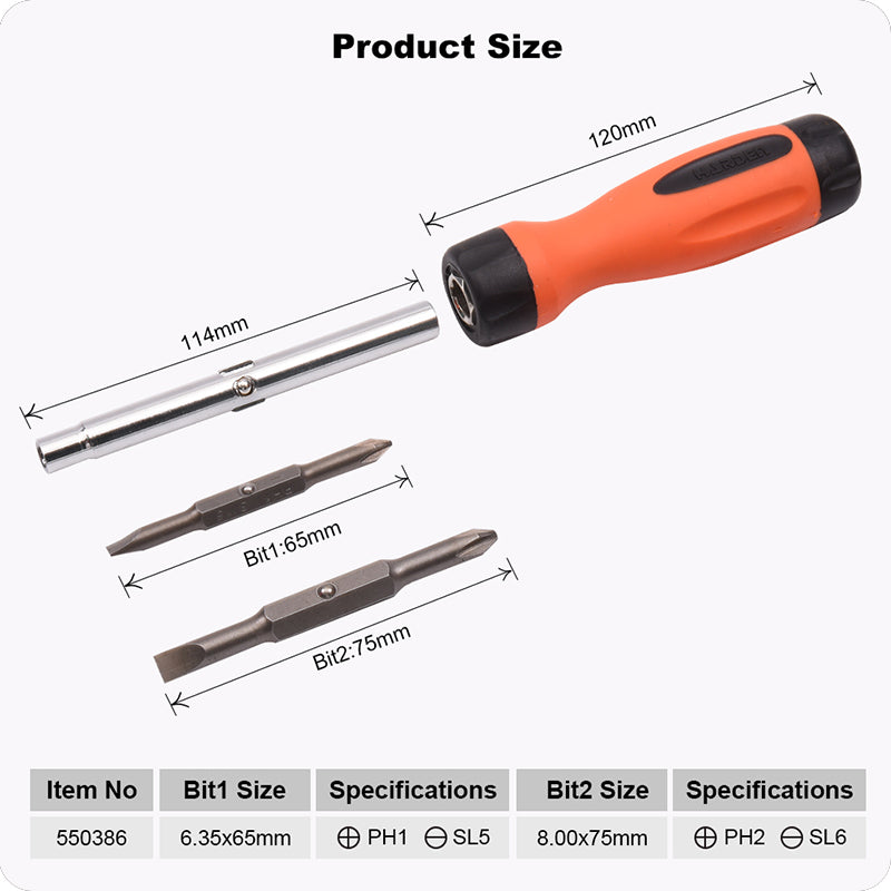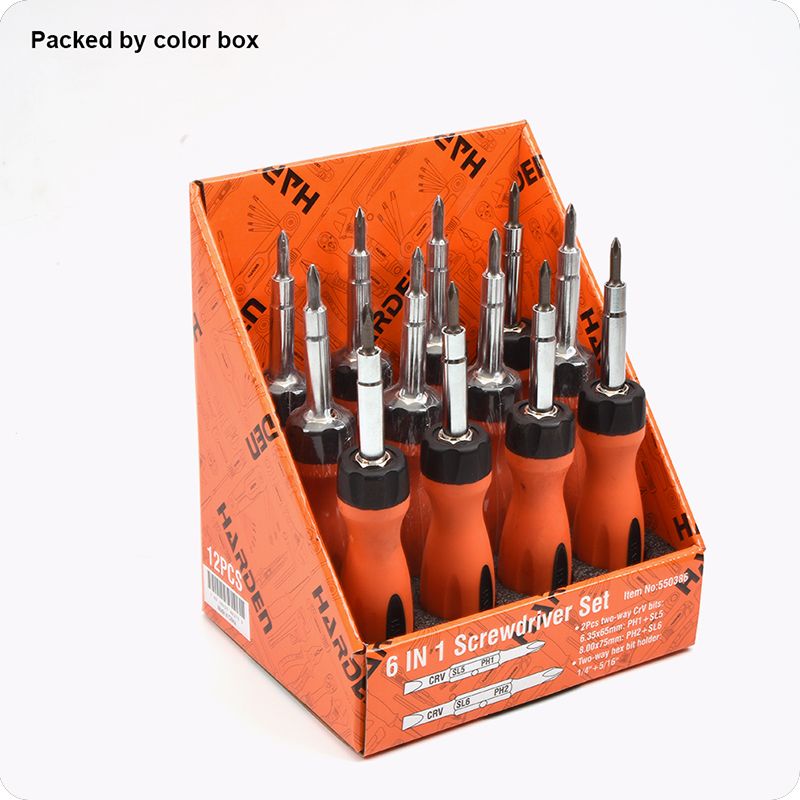 Jogo de Chaves de Fenda e Phillips HARDEN 6 em 1 com Bits Reversíveis e Cabo Intercambiável