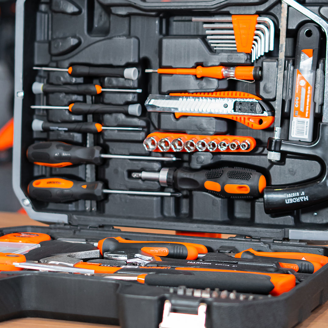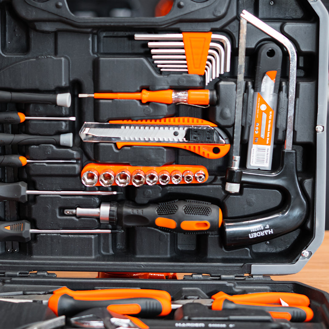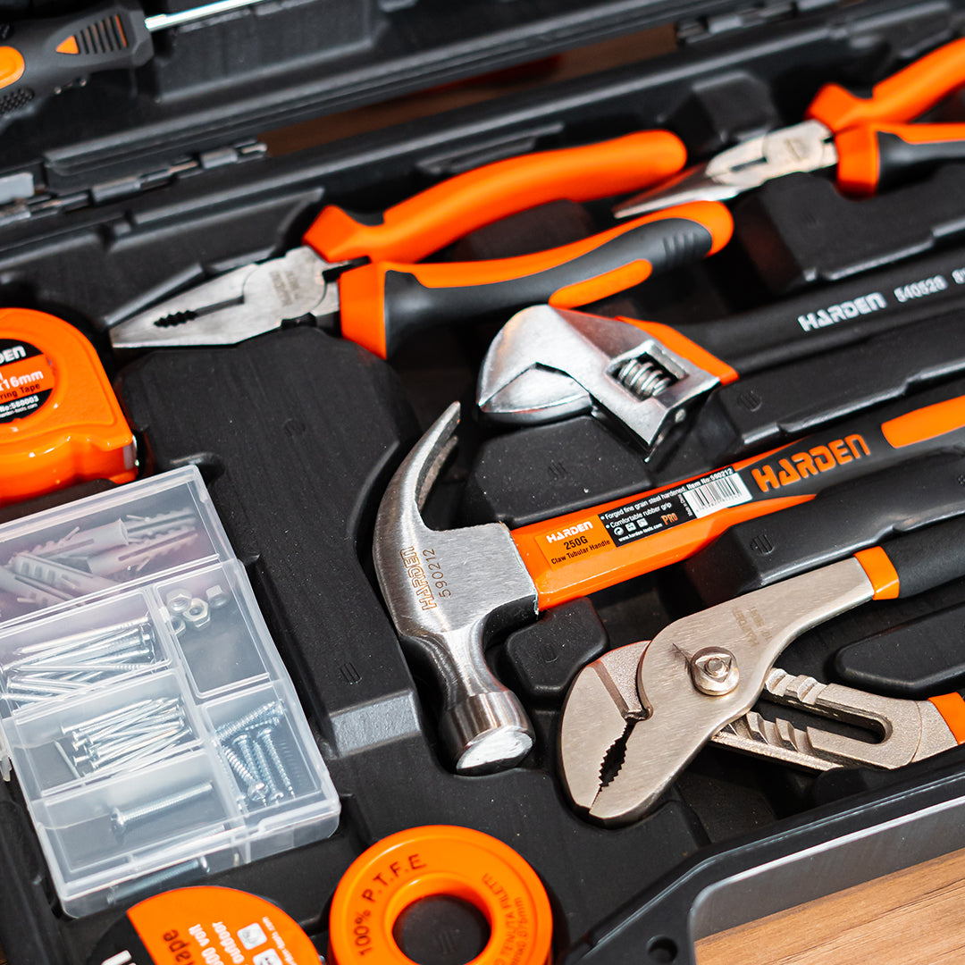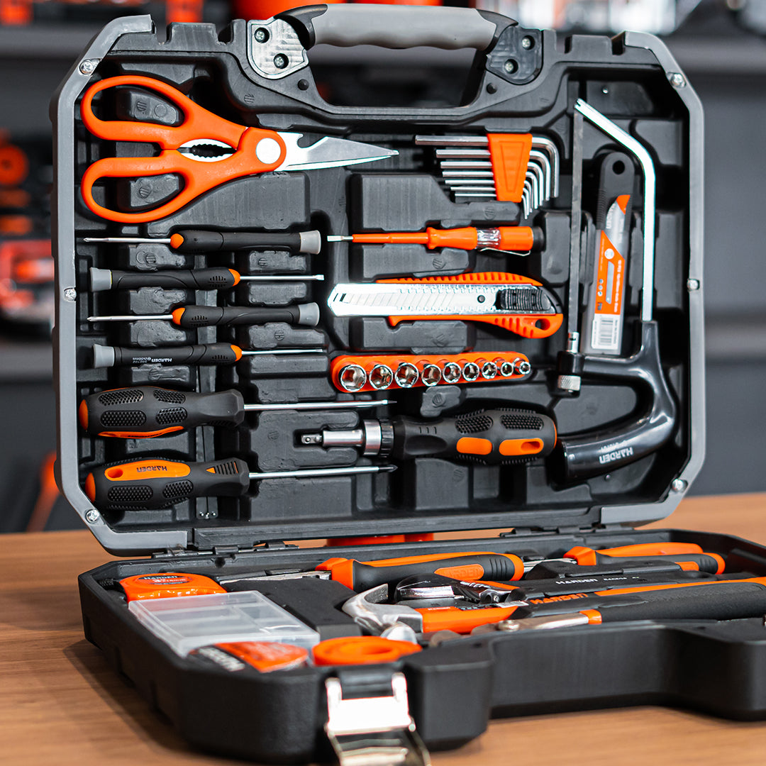 Jogo de Ferramentas Completo HARDEN 63 Peças – Maleta Profissional com Alicates, Chaves, Martelo e Acessórios