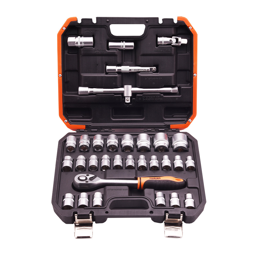 Jogo de Soquetes 1/2" com 32 Peças HARDEN – Cromo Vanádio de Alta Resistência