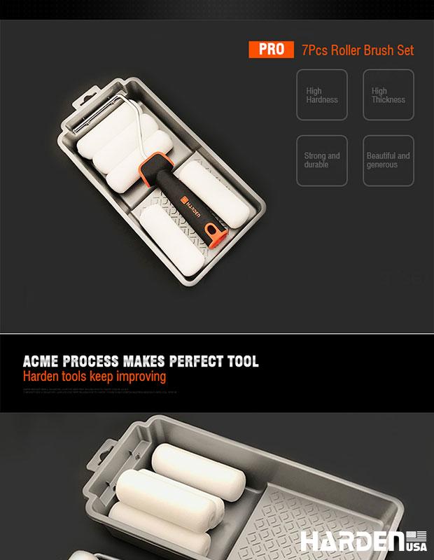 Kit de Rolos de Pintura HARDEN 4” com 7 Peças – Poliester, Acrílico e Espuma com Cabo TPR