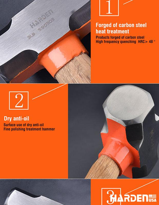Marreta 1600 g HARDEN com Cabo de Madeira de Carvalho – Forjada e Temperada para Máxima Resistência