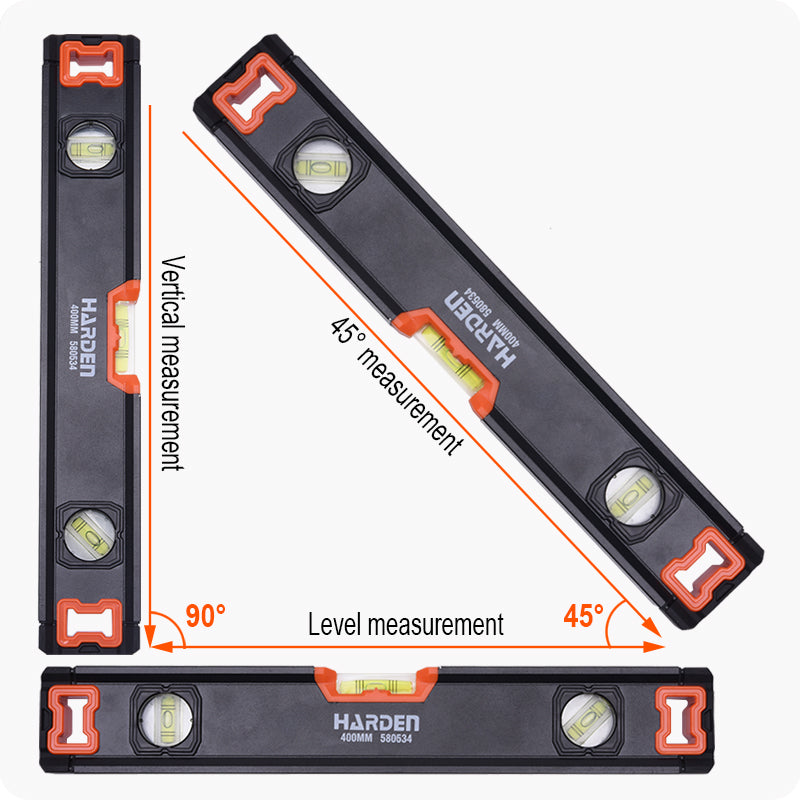 Nível Magnético Profissional HARDEN em Alumínio Reforçado 400 mm a 1200 mm com 3 Bolhas
