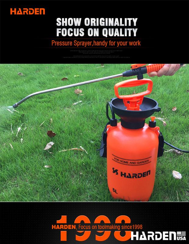 Pulverizador de Pressão 5L HARDEN, Pulverização Precisa com Válvula de Metal